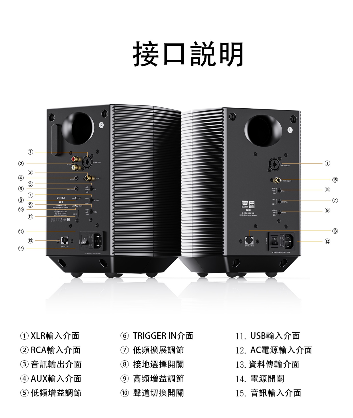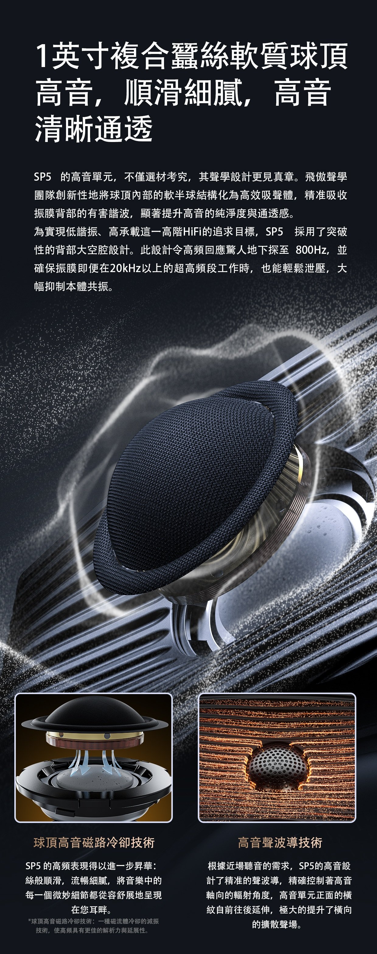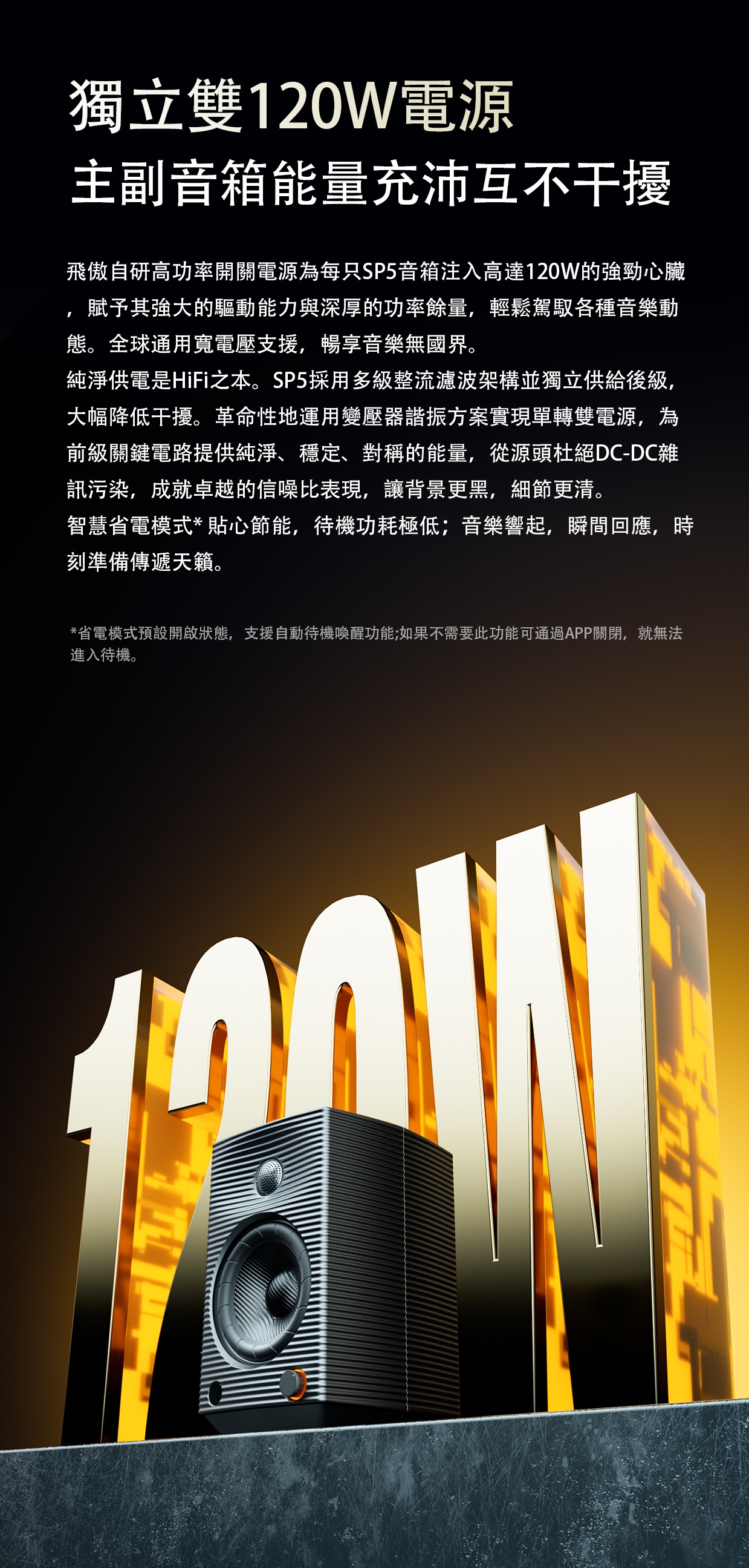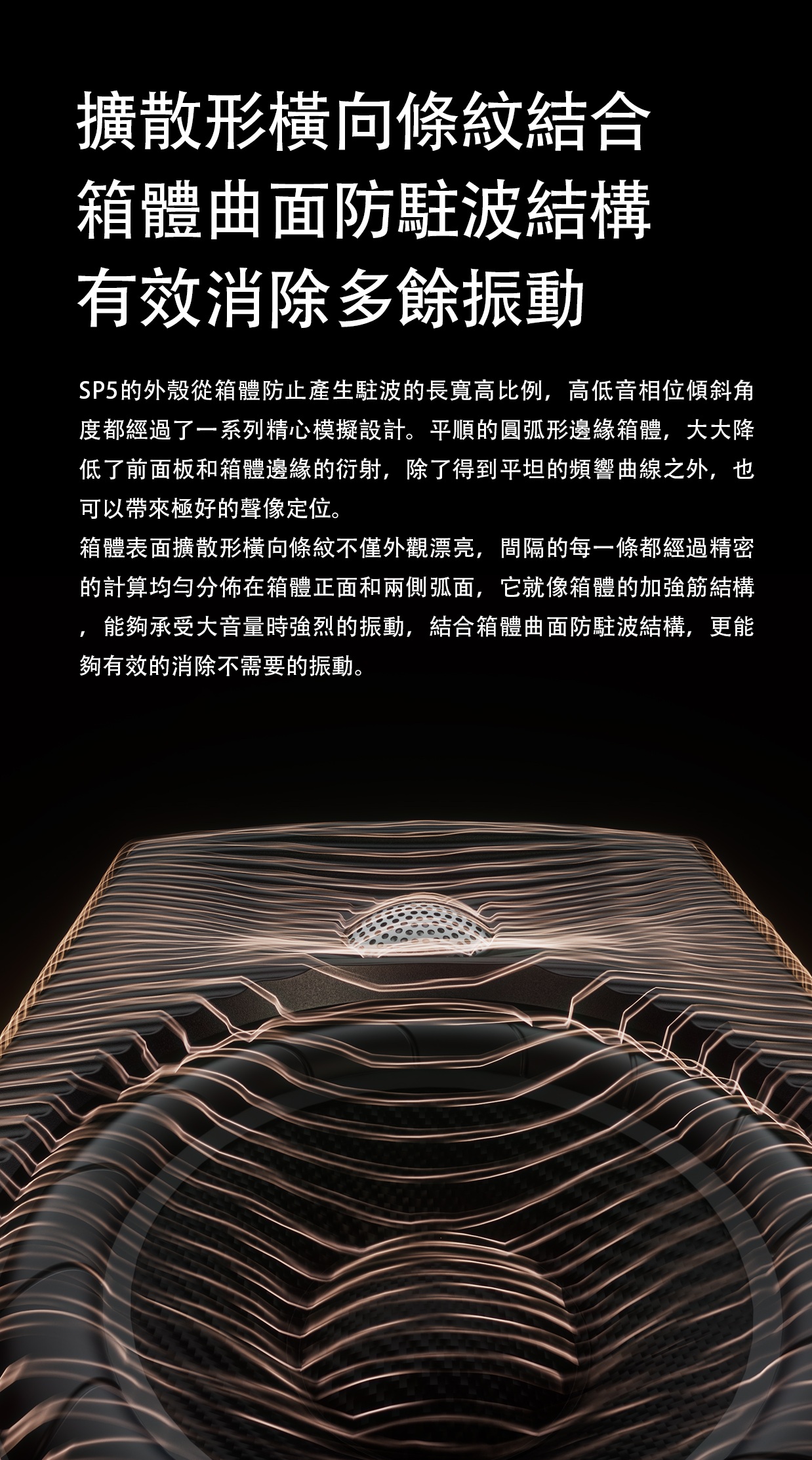 【專業全能桌面有源藍牙音箱 ~ FiiO SP5】 #超多輸入輸出接口 FiiO SP5 (專業全能桌面有源藍牙音箱) 香港版 顏色: 黑色/ 白色 建議零售價: HK$5999 特點: 1. 5.25英寸複合纖維中低音 ~ B&W 700系列同款材料“鋼聽能”振盆,下潛深沉有力 2. 專業XLR等多種音訊輸入 ~ 單端/平衡, 模擬/數位, 藍牙/有線, 應有盡有 3. 60W*2 + 20W*2 ~ 獨立四路精准驅動,控制力非凡 4. 支援FIIO Control APP遠端操控 ~ 支援十段PEQ調節, 精准校聲, 滿足苛刻聽音需求 5. 1英寸複合蠶絲軟質球頂高音 內磁低頻擴展後腔設計,高頻延伸順滑細膩 6. 主副箱獨立 120W雙引擎供電 ~ 自研高品質大功率開關電源, 能量充沛 7. LDAC/ aptX Adaptive 等高清藍牙編碼 ~ 單端/平衡, 模擬/數位, 藍牙/有線,應有盡有 8. 支持兩檔低音高音調節以及兩種頻率低頻擴展 ~ 精准調校, 雙頻澎湃低音 ~ 聲音層次由你掌控 9. 低雜訊高精度電子音量調節 ~ 超低失真, 超寬音量調節範圍, 音量調節更細膩 10. 標配兩條AC電源線 👉設有DEMO 可試 👉網店: https://bit.ly/3VHHi2A 接受八達通App/ 支付寶/ 微信支付/ 信用卡/ X Pay (3 個月免息分期)/ 銀聯/ PayPal/ 銀行轉帳/ 轉數快 ==================== 1. 專業全能桌面有源音箱 專業音質、功能全面、多場景適用 SP5 承襲 SP3 的成功基因,專為追求卓越音質與廣闊空間表現的聽音愛好者打造。搭載更大尺寸專業級聲學單元,提供更強勁功率輸出,配備豐富輸入介面,並支援精准頻率調節。 它不再局限於桌面,而是能與您的臺式系統無縫組合,構建一套完整的家用HiFi音響系統。無論是發燒友鑒賞音樂、客廳沉浸式聆聽、書房影音娛樂,還是專業音訊編輯,SP5 皆能遊刃有餘,呈現震撼人心的專業級聲場,讓您自由暢享每一刻的聽覺盛宴。 2. 5.25英寸“鋼聽能” 複合纖維中低音,下潛 深沉有力 SP5搭載的5.25英寸中低音單元,其核心振盆採用與傳奇B&W700 系列同款材料的“鋼聽能”複合纖維材質。為滿足客廳等更大空間的中遠場聆聽需求,我們在振盆材質、磁路系統、音圈設計與懸邊結構上傾注匠心,進行了全面優化。 這些精密設計賦予了單元卓越的剛性與阻尼特性,確保即使面對洶湧澎湃的大動態場面,SP5依然能從容應對,穩如磐石。最終呈現的低頻,下潛深邃有力,量感飽滿豐盈,剛中帶柔,質感彈性十足,精准還原每一個震撼人心的節奏與細節。 複合線性纖維振盆 ~ 具有良好的韌性和強度,確保在大功率驅動時不產生分割振動,重放頻段失真低於1%。 對稱性磁路 ~ 提供高於1.2T的磁場強度。 大口徑長衝程音圈 ~ 同級少見大口徑30mm長衝程音圈,更輕的振動品質配比,保證足夠的沖 程,獲得理想的動態回應。 NBR橡膠均衡懸邊 ~ 高順性,抗疲勞,螺旋式坑槽分割加強,避免在聆聽大動態場面時,順性 過大造成非線性失真。 *想讓新音箱的聲音更快達到最佳狀態?建議 您先連續播放音樂48小時左右(煲機)。之後 您會發現聲音更順耳、更耐聽。 3. 1英寸複合蠶絲軟質球頂 高音,順滑細膩,高音清晰通透 SP5 的高音單元,不僅選材考究,其聲學設計更見真章。飛傲聲學團隊創新性地將球頂內部的軟半球結構化為高效吸聲體,精准吸收振膜背部的有害諧波,顯著提升高音的純淨度與通透感。 為實現低諧振、高承載這一高階HiFi的追求目標,SP5 採用了突破性的背部大空腔設計。此設計令高頻回應驚人地下探至 800Hz,並確保振膜即便在20kHz以上的超高頻段工作時,也能輕鬆泄壓,大幅抑制本體共振。 球頂高音磁路冷卻技術 SP5 的高頻表現得以進一步昇華:絲般順滑,流暢細膩,將音樂中的每一個微妙細節都從容舒展地呈現在您耳畔。 *球頂高音磁路冷卻技術:一種磁流體冷卻的減振 技術,使高頻具有更佳的解析力與延展性。 高音聲波導技術 根據近場聽音的需求,SP5的高音設計了精准的聲波導,精確控制著高音軸向的輻射角度,高音單元正面的橫紋自前往後延伸,極大的提升了橫向的擴散聲場。 4. 獨立雙120W電源 主副音箱能量充沛互不干擾 飛傲自研高功率開關電源為每只SP5音箱注入高達120W的強勁心臟,賦予其強大的驅動能力與深厚的功率餘量,輕鬆駕馭各種音樂動態。全球通用寬電壓支援,暢享音樂無國界。 純淨供電是HiFi之本。SP5採用多級整流濾波架構並獨立供給後級,大幅降低干擾。革命性地運用變壓器諧振方案實現單轉雙電源,為前級關鍵電路提供純淨、穩定、對稱的能量,從源頭杜絕DC-DC雜訊污染,成就卓越的信噪比表現,讓背景更黑,細節更清。 智慧省電模式* 貼心節能,待機功耗極低;音樂響起,瞬間回應,時刻準備傳遞天籟。 *省電模式預設開啟狀態,支援自動待機喚醒功能;如果不需要此功能可通過APP關閉,就無法 進入待機。 5. 60W*2 + 20W*2 獨立四路功率輸出 澎湃能量精准釋放 SP5在主副箱內分別配備了1顆著名的德州儀器TI TPA3116D2 D類身歷聲數位功放,獨立驅動每個聲道,中低音峰值輸出功率高達60W*2,高音峰值輸出功率高達20W*2。 TPA3116D2具有短路保護和熱保護以及過壓、欠壓和直流保護,可全面防止出現故障。在超載情況下,器件會將故障情況回饋給處理器,從而避免自身遭到損壞。 60W x 2中低音峰值輸出功率高達 20W x 2高音峰值輸出功率高達 6. XLR平衡輸入 專業音訊的純淨基因 XLR平衡介面常見於專業音訊設備,相比普通的RCA介面,其主要優勢在於抗干擾能力強,適合長距離傳輸,同時能提供更高品質的音訊信號。 SP5 搭載專業級 XLR 平衡輸入介面,通