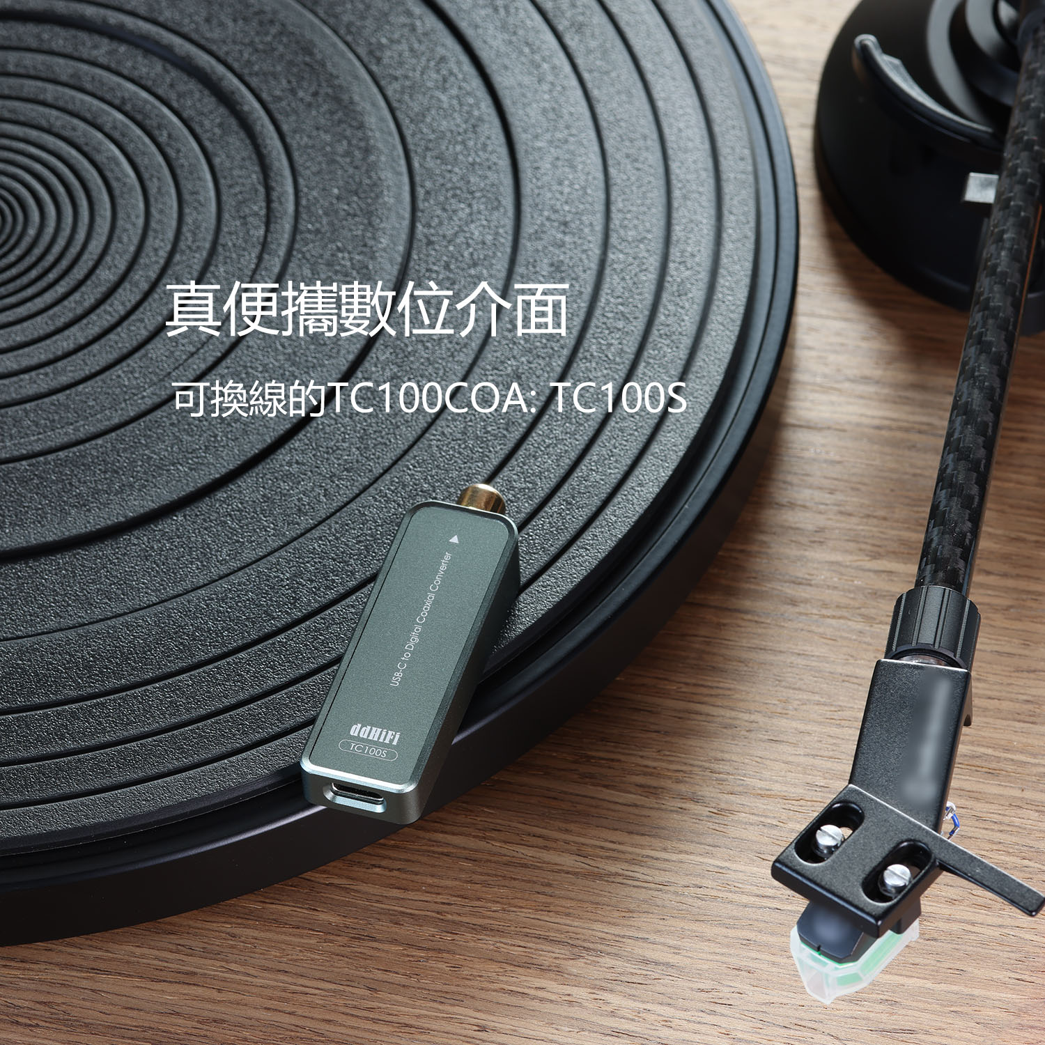 【dd Hifi TC100S 數位介面 ~ Type-C母轉RCA同軸】 dd Hifi TC100S 數位介面(Type-C母轉RCA同軸)– HK$598 真便攜數位介面支持24bit/192kHz 可換線的TC100COA: TC100S 1. 手機做音源,老設備怎麼接? 較早的解碼功放產品,數位輸入介面有同軸、光纖,但是不具備USB輸入功能,無法連接到USB介面的音源播放設備,特別是USB-C介面的安卓手機和Lightning介面的iPhone,使用TC100S,就可以讓老設備重生,用手機作為音源替代CD機。 2. 數位音訊變壓器 一些劣質的USB轉換設備,USB的地和同軸輸出的地是直通的,或者說只用一個電容做簡單隔離,這樣的音訊廣播會非常不穩定。 TC100S採用 Murata(村田) 出品的DA101C數位音訊變壓器, 能平衡USB輸入和同軸輸出電路, 保障數位音訊高品質的傳輸。 3. 標準母座,可搭配RCA插頭同軸線纜 可以根據環境需要連接同軸線纜使用,搭配不同材質的同軸線*也會有不同的音色表現。 *推薦搭配ddHiFi專用同軸線材RC100C。 4. 輸入端採用USB-C母座,TC100S在與不同的設備連接時,介面各不相同,比如USB-C、USB-A、Lightning等,也有不同長度的需求,這樣就可以根據自己需要搭配資料線,可以直接使用手機的USB資料線*,也推薦搭配使用ddHiFi的TC09S、MFi09S獲得更好的音質體驗。 5. USB線可更換 *1. 部分USB-C高速資料線可能不相容,請選用較常規的2.0資料線。2.搭配iPhone使用時,不能使用常規的資料線, 需要使用OTG功能的資料線,比如MFi06S、MFi09S,或者搭配OTG轉接頭TC28i、TC28i Pro使用。 6. 支持24bit/192kHz 搭配智慧手機使用時,使用無損播放APP,就可以收聽24bit/192kHz*的高解析無損音樂。 *常見解碼設備的同軸介面,最高僅支援到24bit/192kHz的信號輸入。 TC100S(TC100COA可換線版本) 規格參數: APP識別ID:TC100COA 取樣速率支援:支持到24bit/192kHz 介面:USB-C 母座,RCA母座 尺寸:85×20×12.5(mm) 重量:18g